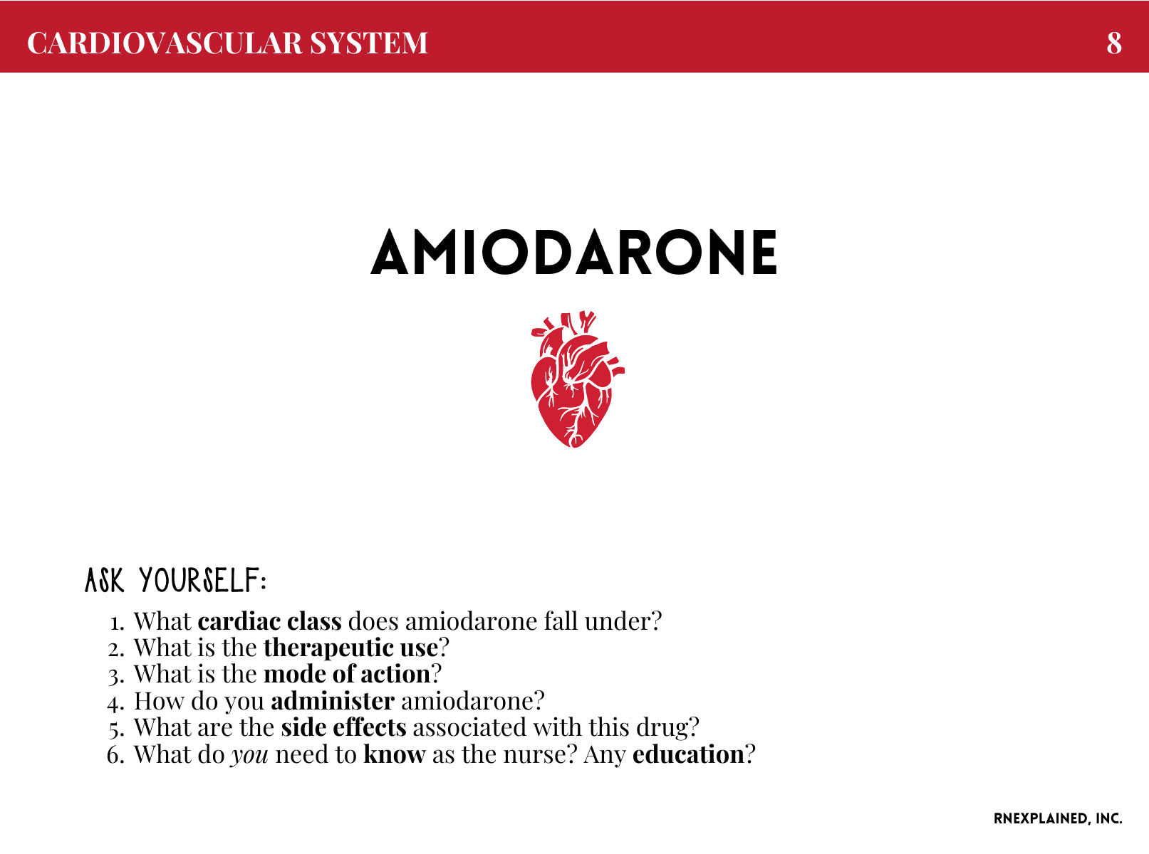 - Flip the card over, and the answers to those questions are numerically listed. Those questions will tell you everything you need about the drug/class. Quiz yourself. Quiz a friend!