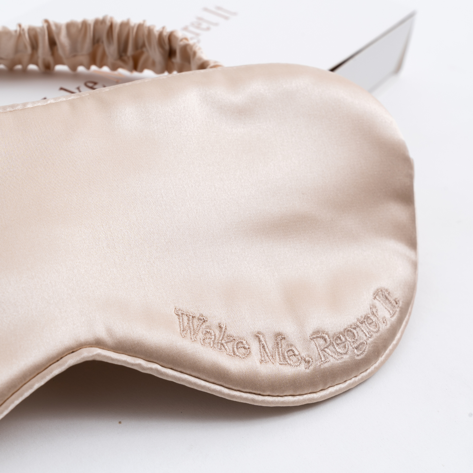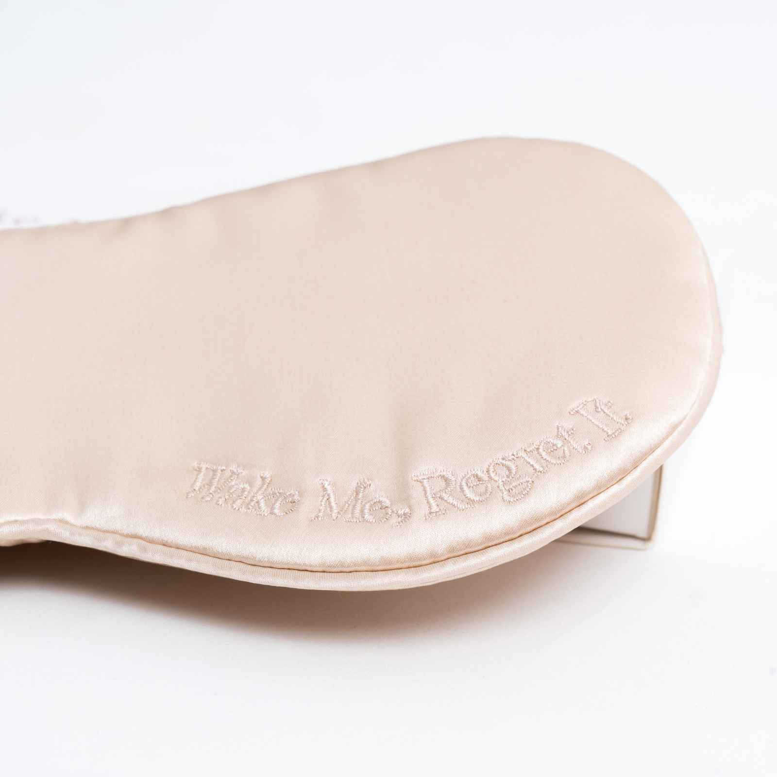 Embroidery: “Wake Me, Regret It” in chic champagne monochrome