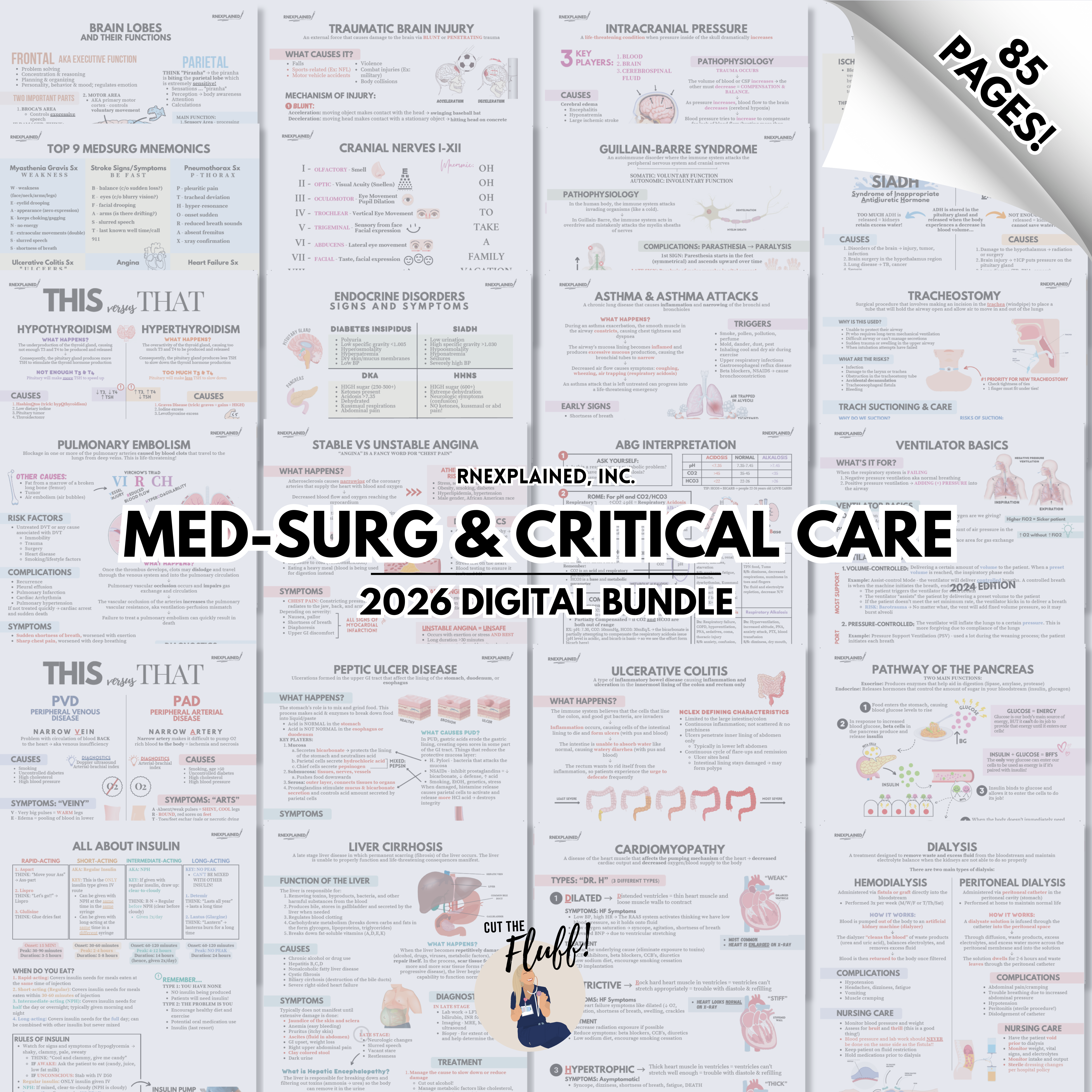 What’s new? Compared to our last Med-Surg and Critical Care Bundles, the 2026 Edition is completely renovated and revamped with updated nursing practice, teachings, and treatment protocols. Existing nursing topics feature a new & improved look with more in-depth, easy-to-understand breakdowns, with added mnemonics and quiz questions. New study sheets have been added as well! Essentially, the entire Med-Surg/Critical Care Bundle is never-before-seen!
