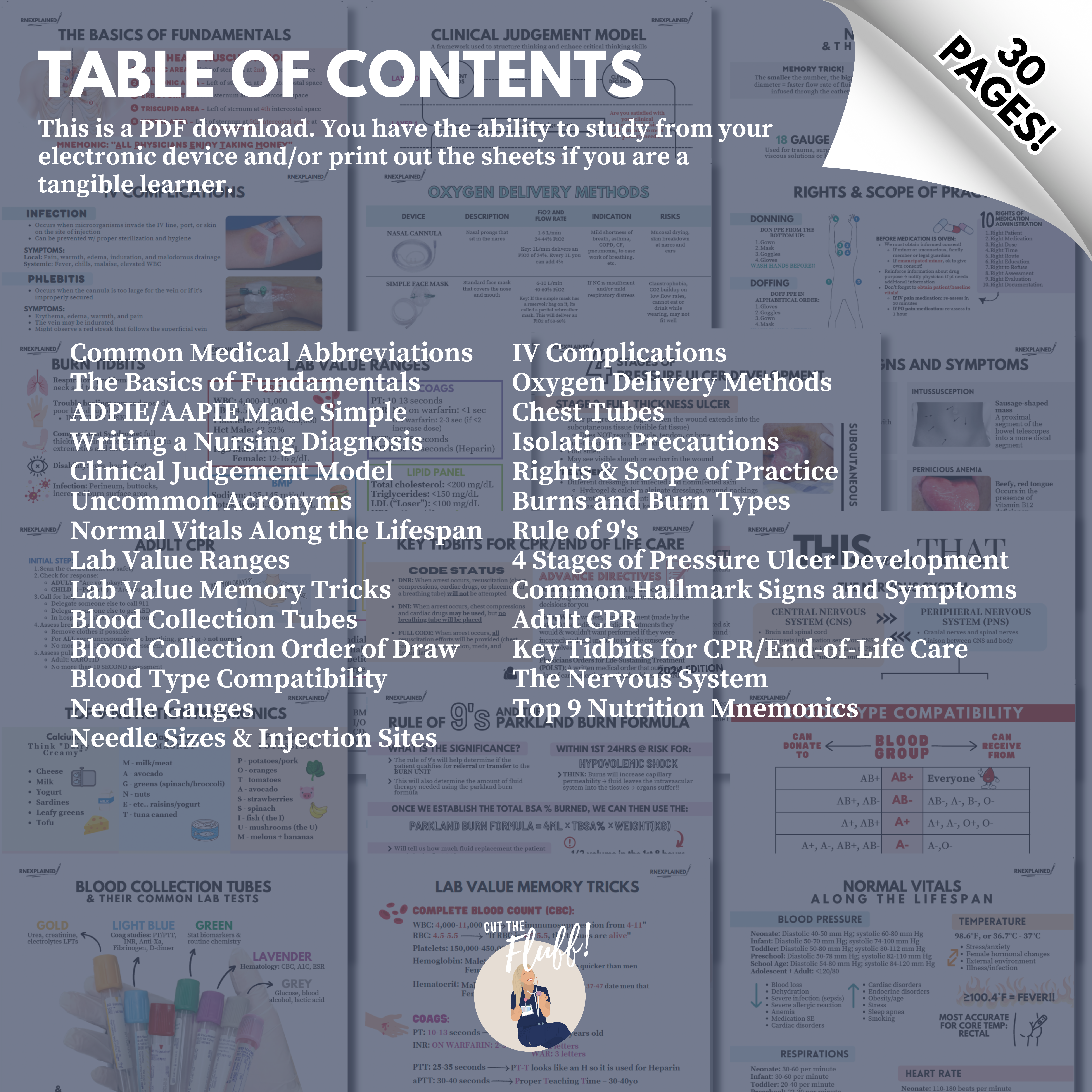 What’s inside? This digital bundle includes 30+ nursing topics tailored to Fundamentals of Nursing. Please refer to the listing photos for a detailed table of contents.